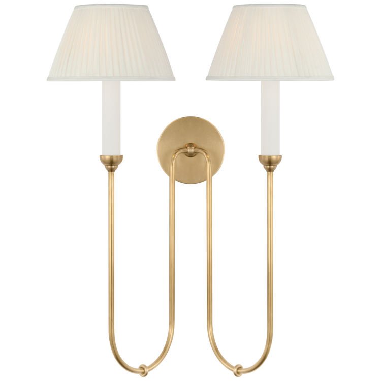 Ingela 24" Double Sconce in Hand-Rubbed Antique Brass with Silk Pleat Shades