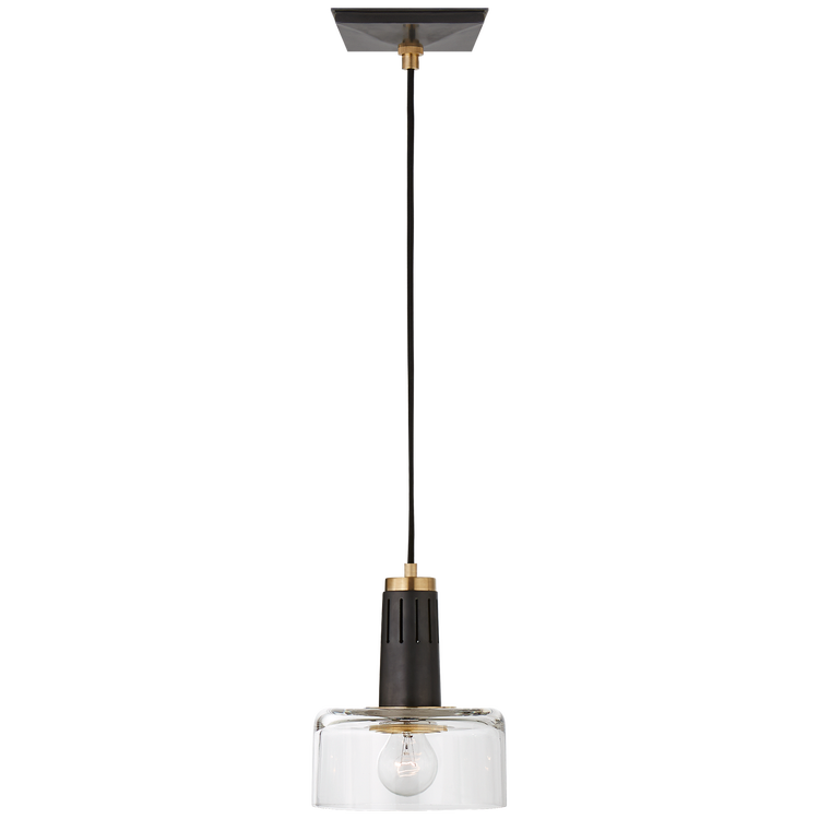 Iris Single Pendant in Bronze and Hand-Rubbed Antique Brass with Clear Glass Open Box