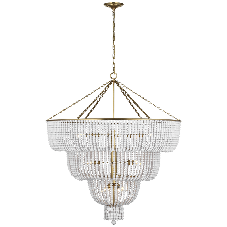 Jacqueline 46" Basket Chandelier in Hand-Rubbed Antique Brass with White Glass