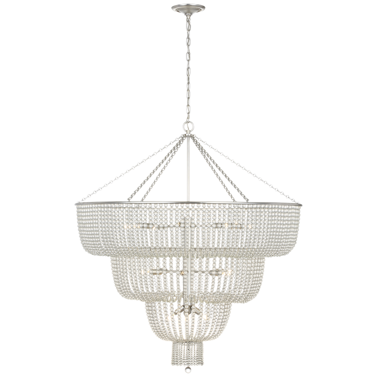 Jacqueline 46" Basket Chandelier in Burnished Silver Leaf with White Acrylic