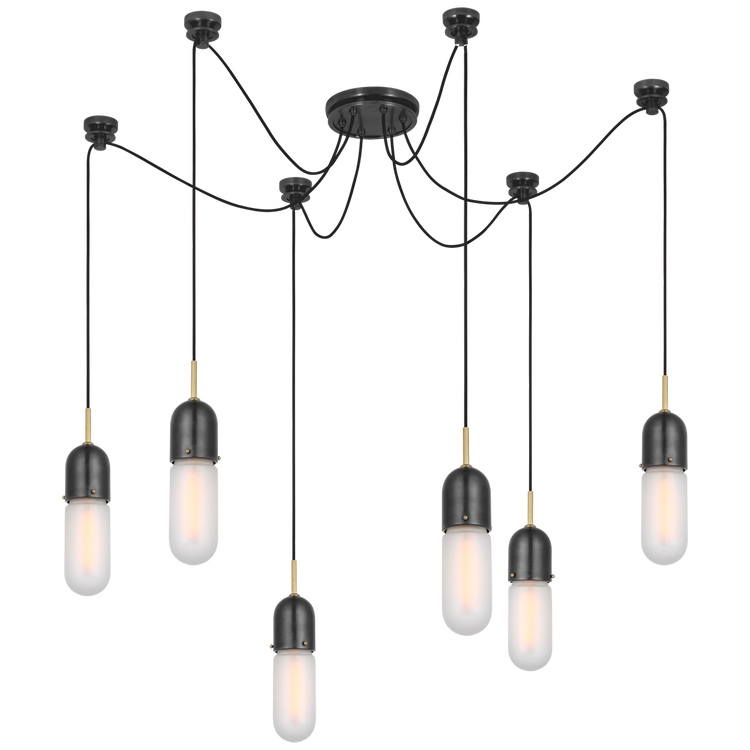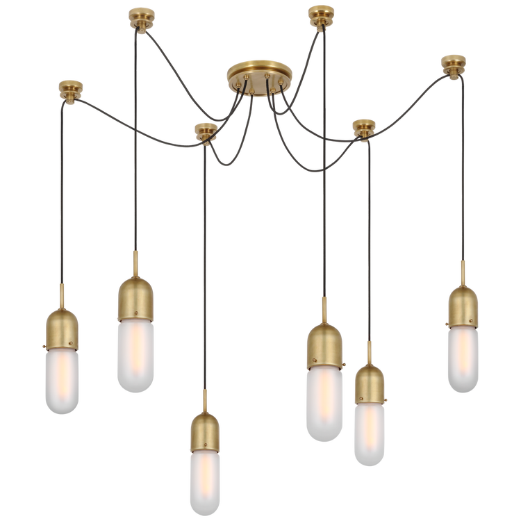 Junio 6-Light Chandelier in Hand-Rubbed Antique Brass with Frosted Glass