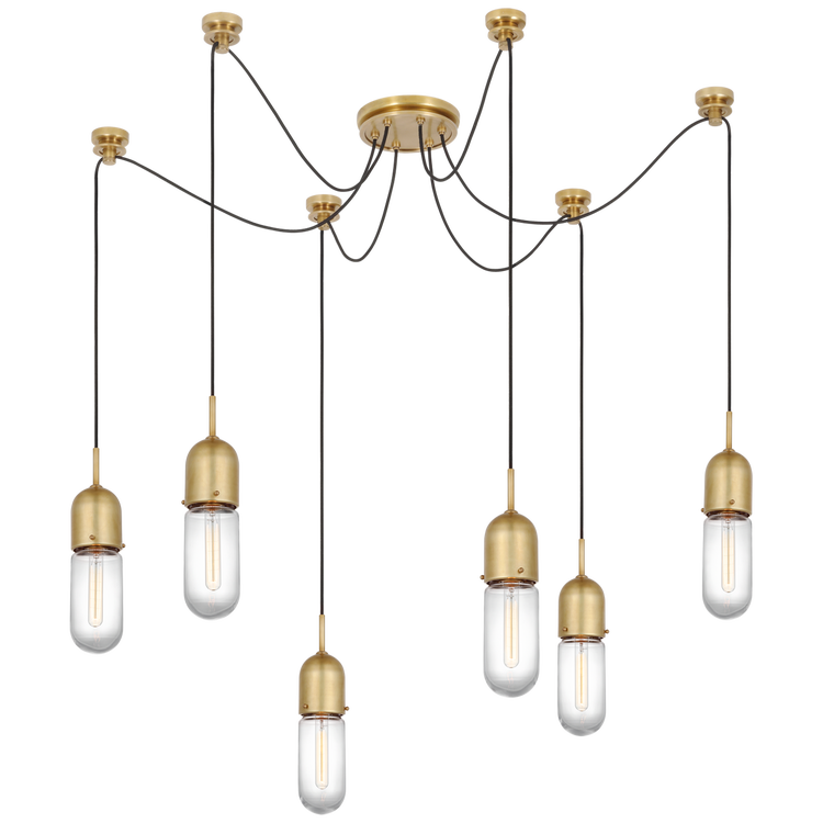 Junio 6-Light Chandelier in Hand-Rubbed Antique Brass with Clear Glass
