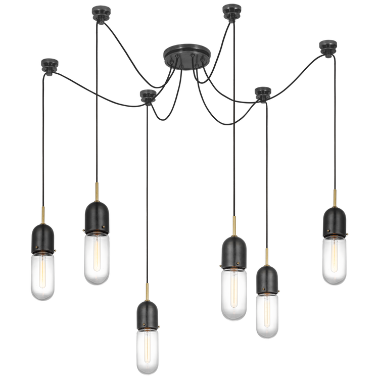 Junio 6-Light Chandelier in Bronze and Brass with Clear Glass