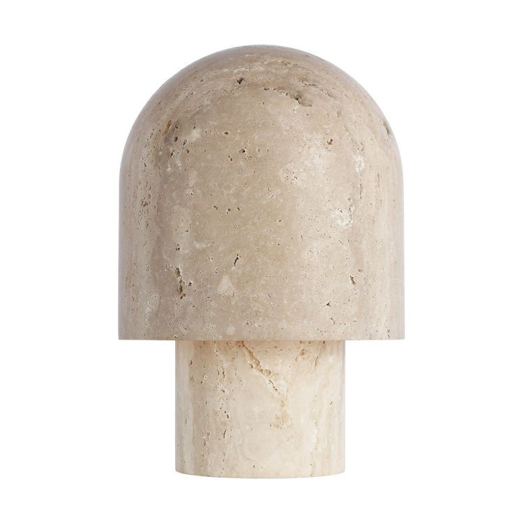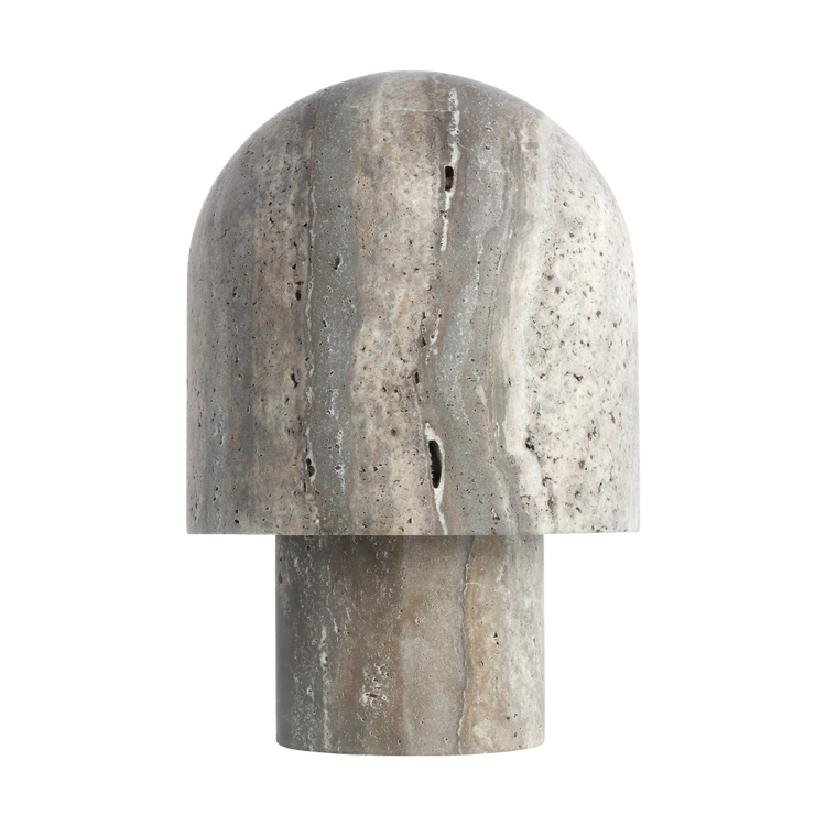 Inspired by the delicate form of mushrooms, the Kennett Small Table Lamp by Sean Lavin is a refined expression of organic elegance. Crafted from natural travertine stone, each lamp is inherently unique—its subtle variations in tone and texture bringing a sense of individuality and warmth to any interior. This large-scale design is ideal for console tables, side tables, or built-in cabinetry, where its sculptural presence and soft, diffused glow can truly shine. The warm illumination gently envelops your space, creating a serene and inviting ambiance while seamlessly integrating natural elements into the home.