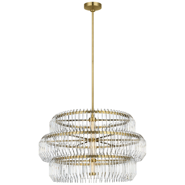 Killarney 32" Layered Drum Chandelier in Natural Brass with Clear Crystal