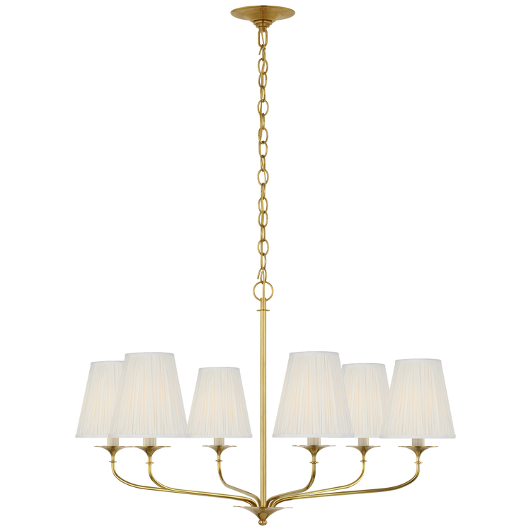Knox 32" Chandelier in Hand-Rubbed Antique Brass with Silk Pleated Shades
