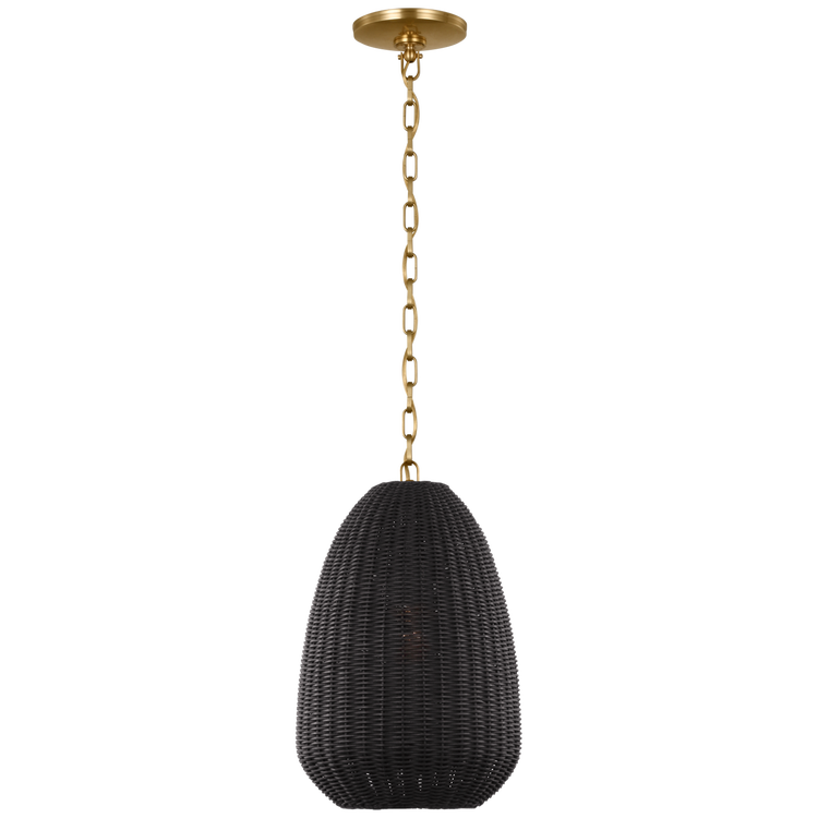 Kokomo 12" Pendant in Antique-Burnished Brass with Charcoal Wicker Shade