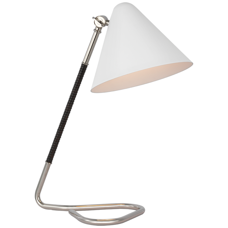 Laken Small Desk Lamp in Polished Nickel and Black Rattan with White Shade Open Box