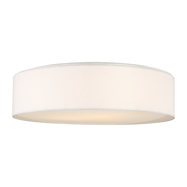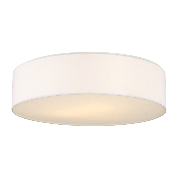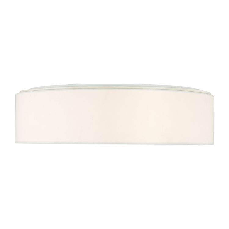 The Larson 24" Flush Mount is tailored entirely in textured white linen, its cylindrical profile limitlessly versatile. Offered in three diameters, Larson suits a range of ceiling applications with a shallow profile that provides warm, even glow. Ideal for hallways, bedrooms, offices, or any setting where low ceiling heights demand a flush design with subtle refinement.