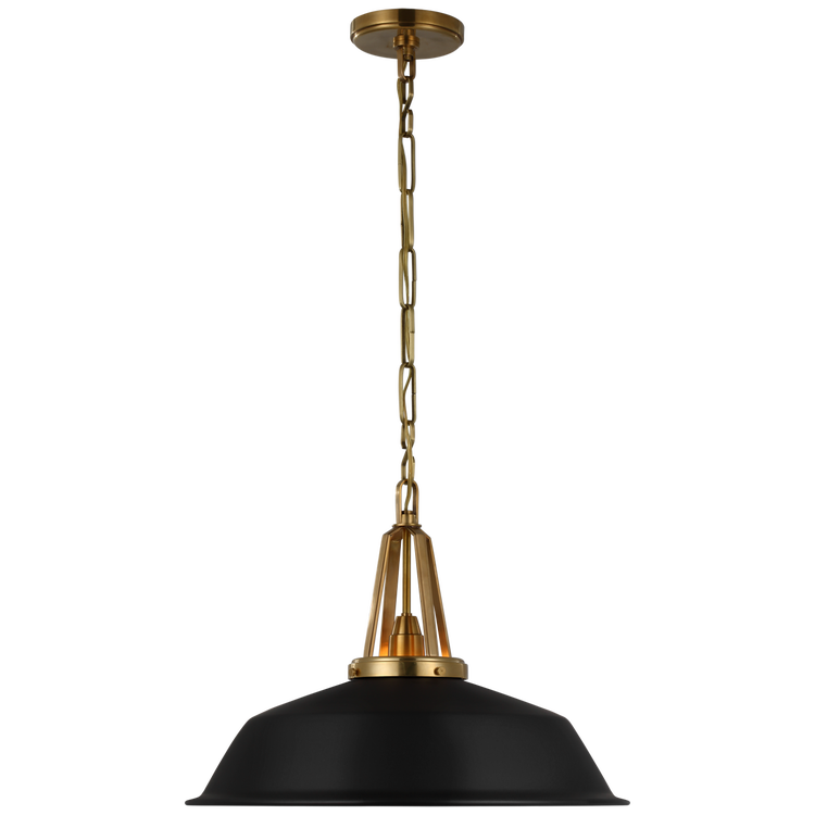 Layton 20" Pendant in Antique-Burnished Brass with Matte Black Shade Open Box
