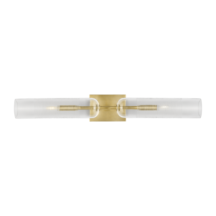 Designed with both form and function in mind, the Leano Vanity Light features dual hand cut ribbed glass cylinders mounted on a structured brass base. Ideal for bath and vanity settings, it casts a flattering, diffused light that enhances daily routines with elegance. The combination of warm metal tones and tactile glass detail brings a contemporary yet timeless quality to bathrooms and dressing areas.