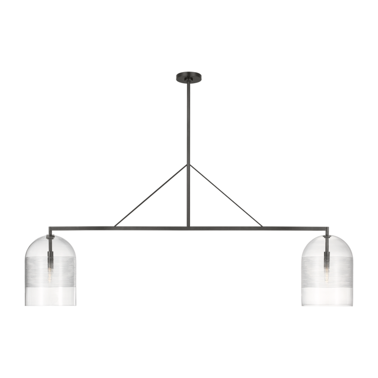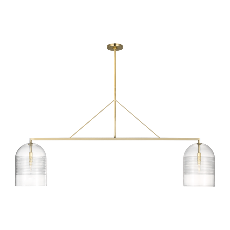 Featuring a combination of solid brass and hand cut ribbed glass, the Leano Linear Chandelier effortlessly contrasts linear forms and angles with rounded cylindrical shades. The precision-cut ribbed glass lends a subtle visual detail that softens the illumination. The Leano collection will create a sophisticated statement in a variety of spaces from dining rooms to bathrooms
