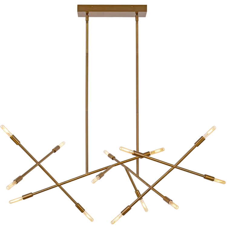 The Line Wave 2 linear suspension fixture by VC Modern features an unsystematic pattern of asymmetric lengths converging to form one incredibly dramatic light fixture. LED candelabra based light bulbs adorn each of the 12 tips to not only highlight the structure but also create a simple yet impactful design statement. Scaling at 15.9 in. high and 48 in. long the Line Wave 2 is ideal in both residential and commercial lighting applications. Available in modern finishes each finish further enchasing the striking de,sign of the Line Wave 2 linear fixture. Available lamping options include energy efficient LED and no-lamp. all lamping options, with the exception of no-lamp, are fully-dimmable to create the desired ambiance in your special space.