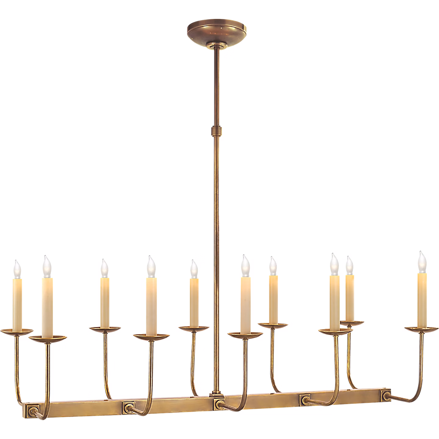 Linear Branched Chandelier in Hand-Rubbed Antique Brass