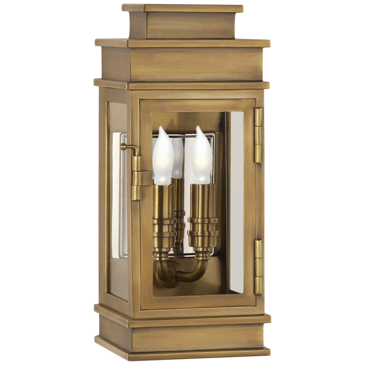 Linear Mini Wall Lantern in Antique-Burnished Brass with Clear Glass Open Box