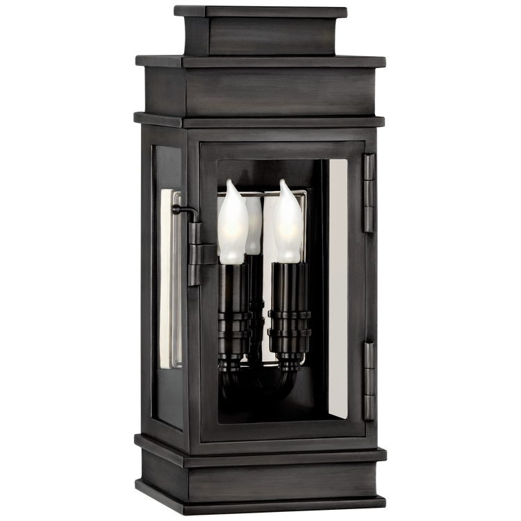 Linear Mini Wall Lantern in Bronze with Clear Glass Open Box