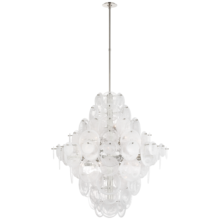 Loire 44" Grande Entry Chandelier in Polished Nickel with White Strie Glass