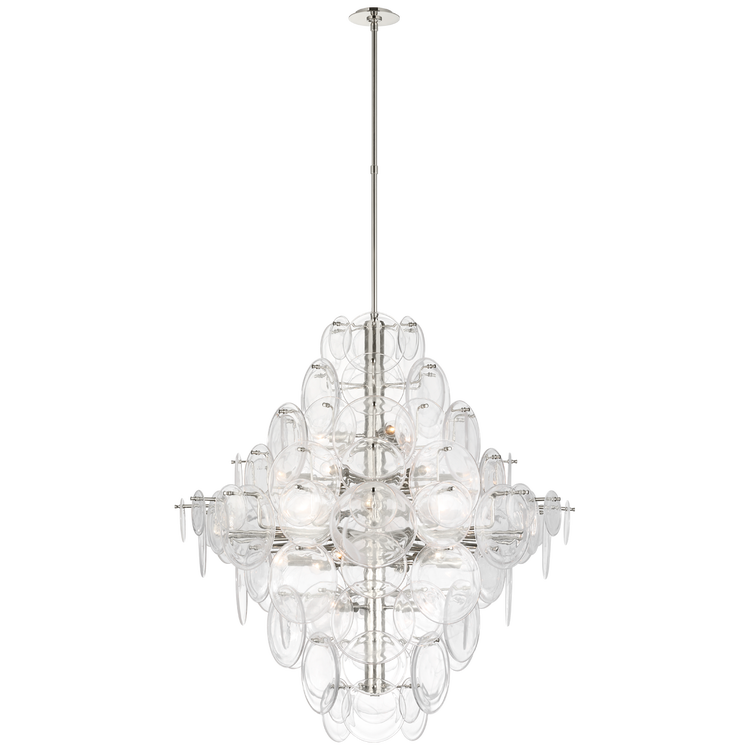 Loire 44" Grande Entry Chandelier in Polished Nickel with Clear Strie Glass