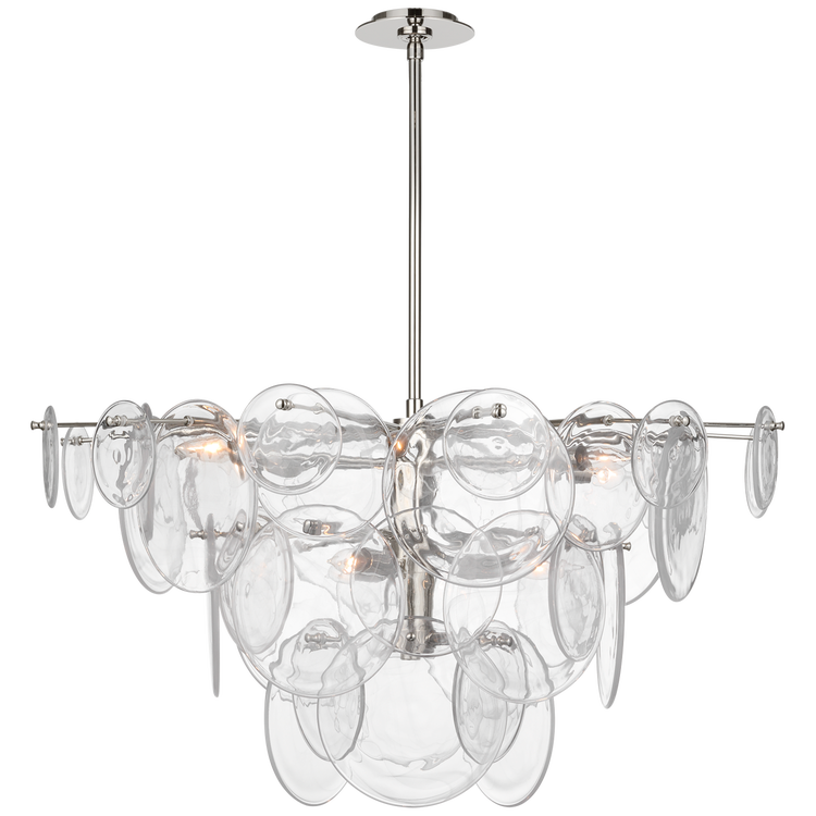 Loire Large Chandelier in Polished Nickel with Clear Strie Glass