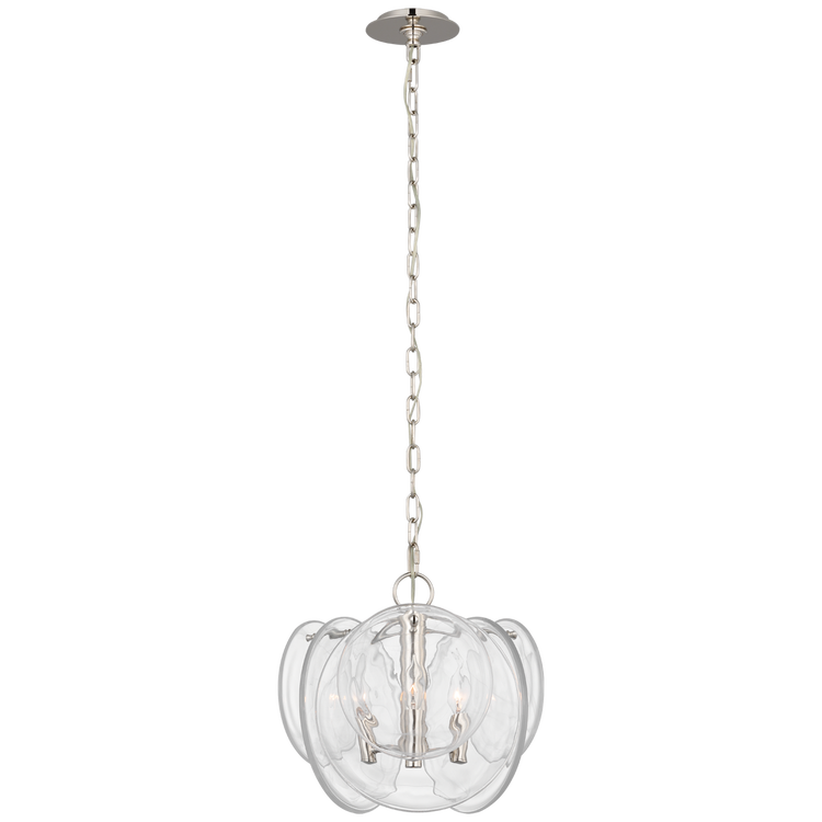 Loire Petite Chandelier in Polished Nickel with Clear Strie Glass