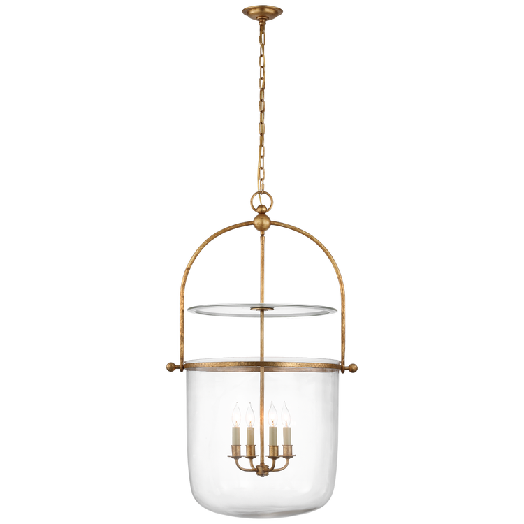 Lorford Large Smoke Bell Lantern in Gilded Iron with Clear Glass Open Box