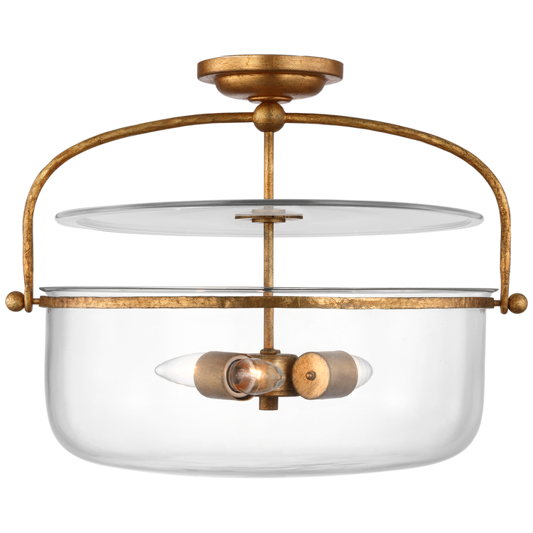 Lorford Medium Semi-Flush Lantern in Gilded Iron with Clear Glass Open Box