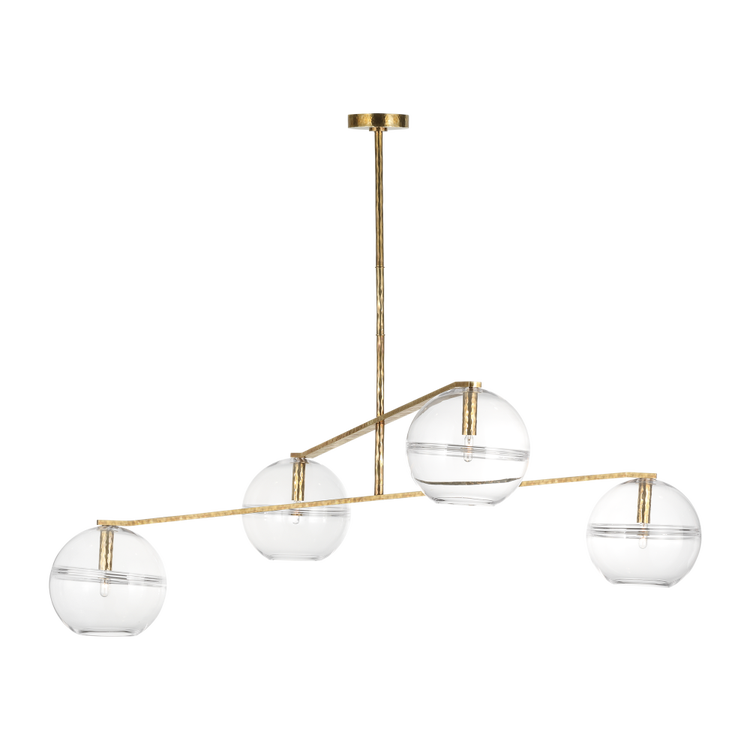 The Lowing Medium Chandelier by Sean Lavin is best described as a deconstructed modern chandelier, where glass orbs are each suspended from the sleek branchlike central hub via contrasting textured cloth-covered cords to make a distinctly alluring visual statement. While each transparent clear glass orb is perfectly spherical and smooth on the exterior surface, the interior surface features gradually thickening bands of glass artfully crafted by talented artisans to add alluring visual interest and dimension to your space. Whether you select the two, four, or six-light chandelier, you will find an option perfect for your kitchen island lighting, dining room lighting, or living room lighting application. Its two fully dimmable vintage tubular style LED lamping options are not only energy efficient but also allow you to customize these pendant lights to your desired ambiance.