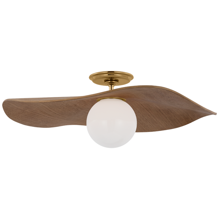Mahalo 22" Semi-Flush Mount in Hand-Rubbed Antique Brass and White Glass with Natural Oak Shade