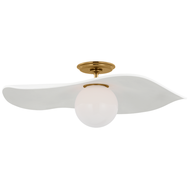 Mahalo 22" Semi-Flush Mount in Hand-Rubbed Antique Brass and White Glass with Matte White Shade