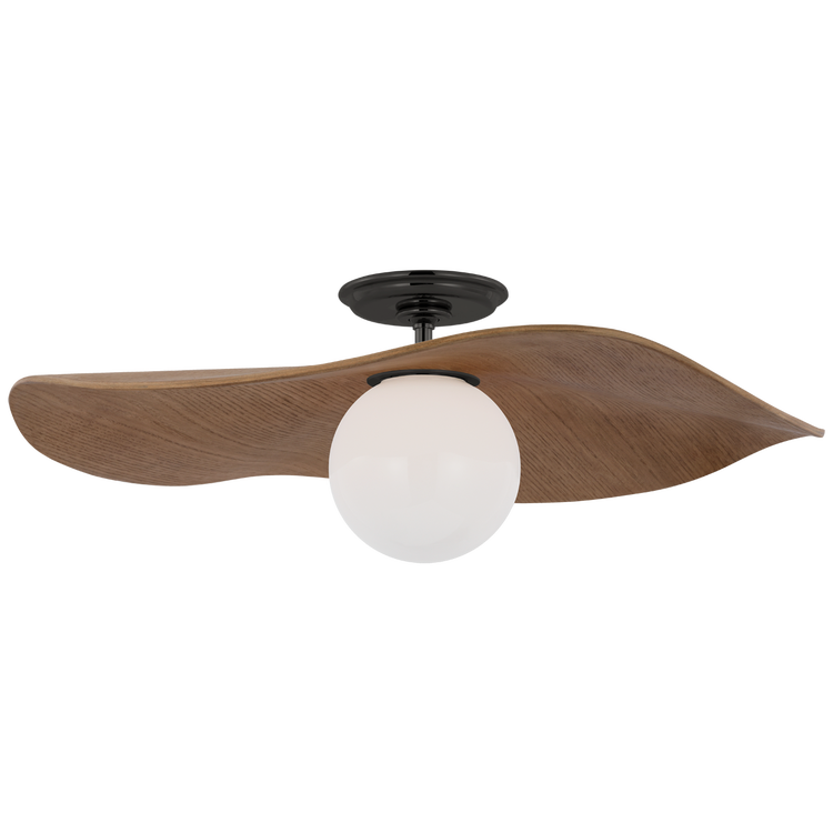 Mahalo 22" Semi-Flush Mount in Bronze and White Glass with Natural Oak Shade