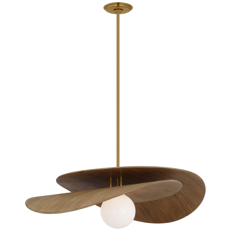 Mahalo 32" Tiered Pendant in Hand-Rubbed Antique Brass and Natural Oak with White Glass Open Box