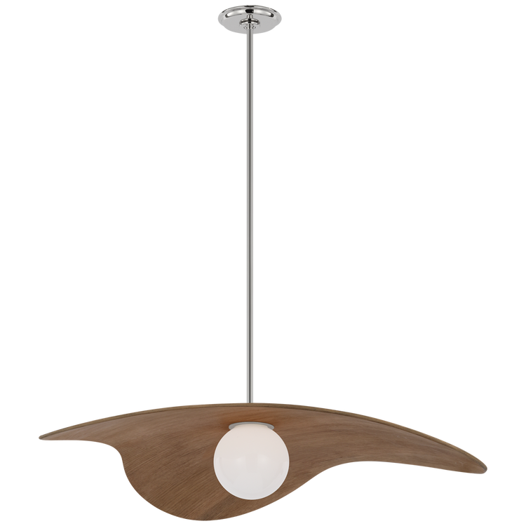 Mahalo 35" Tri Pendant in Polished Nickel and White Glass with Natural Oak Shade