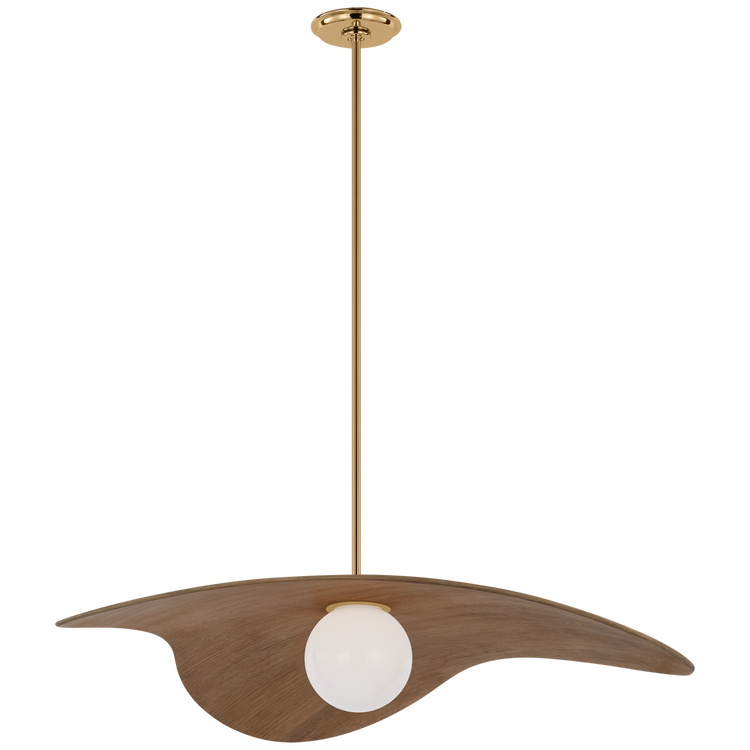 Mahalo 35" Tri Pendant in Hand-Rubbed Antique Brass and White Glass with Natural Oak Shade