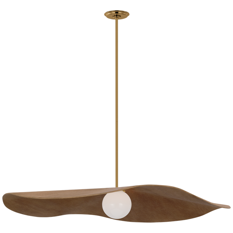 Mahalo 40" Pendant in Hand-Rubbed Antique Brass and White Glass with Natural Oak Shade