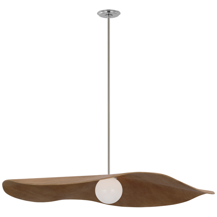 Mahalo 40" Pendant in Polished Nickel and White Glass with Natural Oak Shade