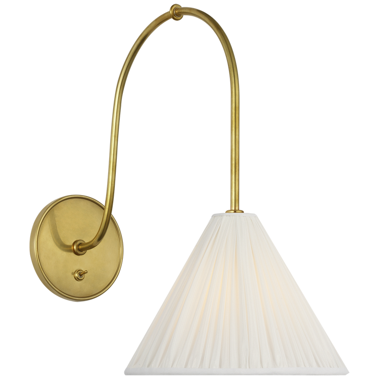 Malia 14" Arched Wall Light in Hand-Rubbed Antique Brass with Silk Pleated Shade