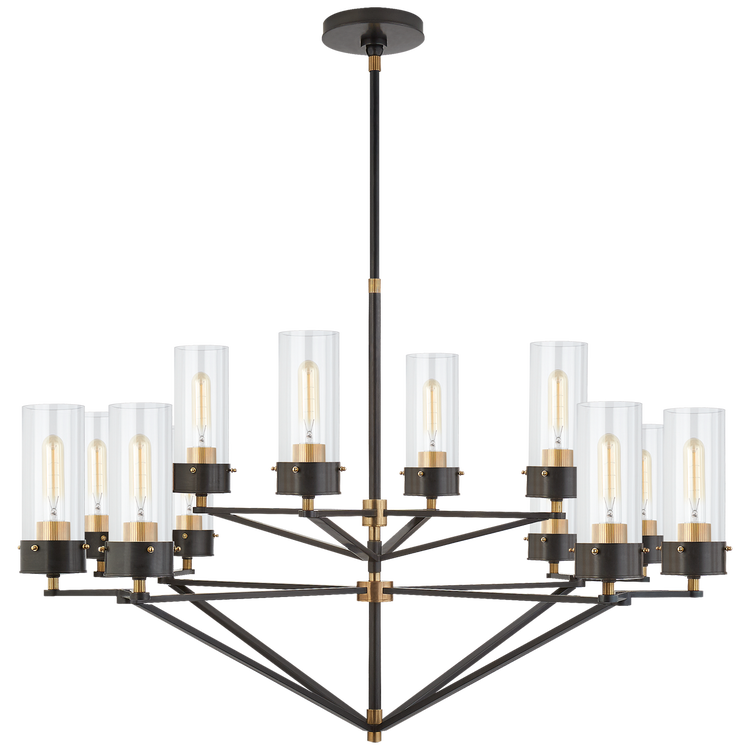 Marais Large Chandelier in Bronze and Hand-Rubbed Antique Brass with Clear Glass Open Box