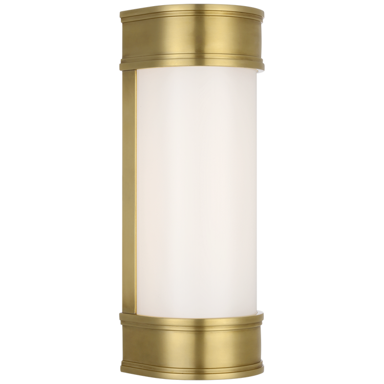 Marden 12" Salon Bath Sconce in Antique-Burnished Brass with White Glass