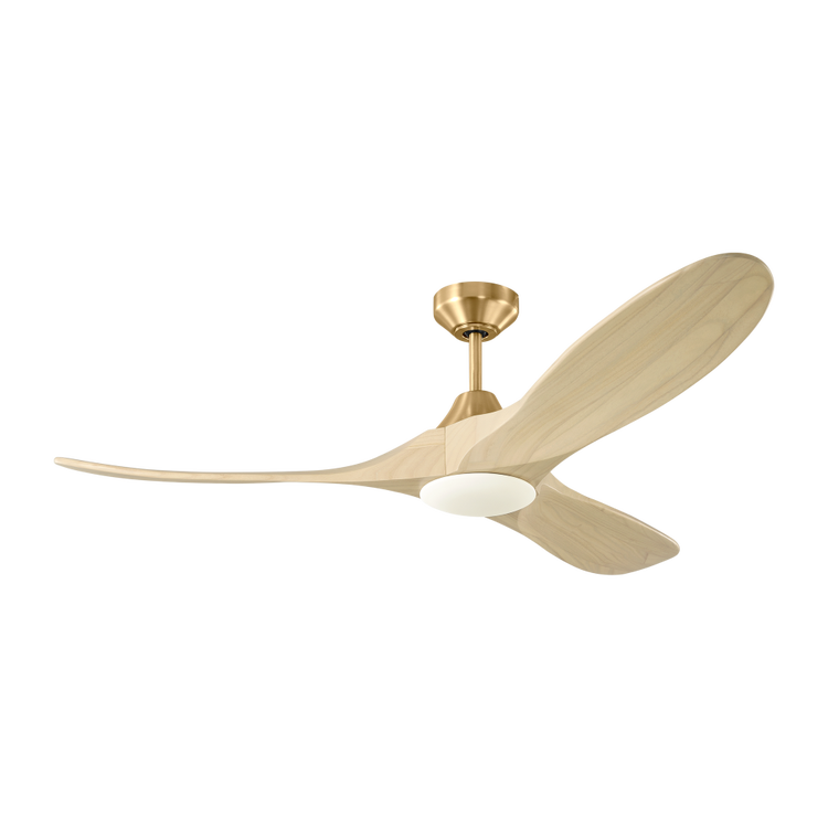 Maverick Smart 52 LED Ceiling Fan in with Washed White Oak Blades and Light Kit Burnished Brass