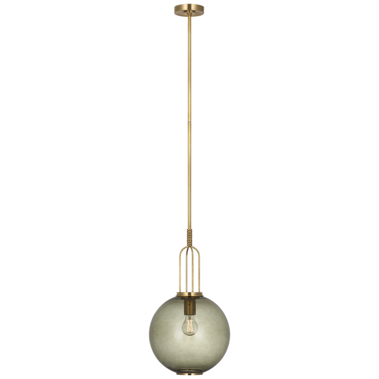 Meir 12" Pendant in Soft Brass with Smoked Glass