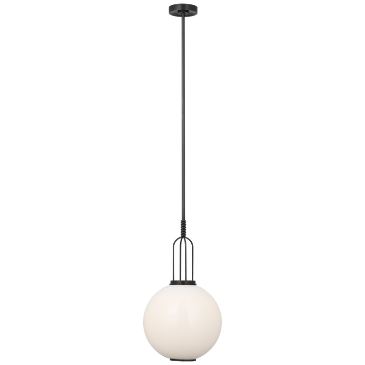 Meir 12" Pendant in Bronze with White Glass