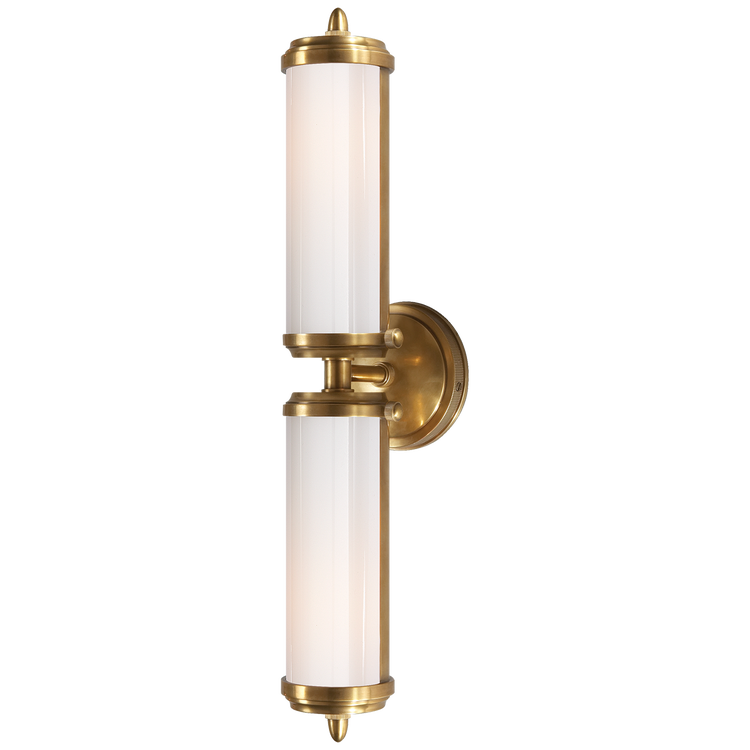 Merchant Double Bath Light in Hand-Rubbed Antique Brass with White Glass Open Box