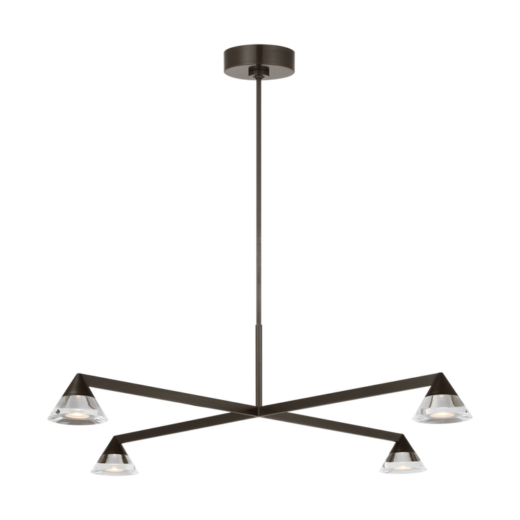 Bold yet refined, the Midrand 37" Crystal Chandelier captures attention with its striking geometric form inspired by the Grand Central Water Tower. Suspended metal cones radiate outward in a balanced composition, each finished with a crystal diffuser that casts a warm, even glow. A dramatic centerpiece for dining rooms, entryways, or open-plan interiors, it blends industrial inspiration with modern sophistication.