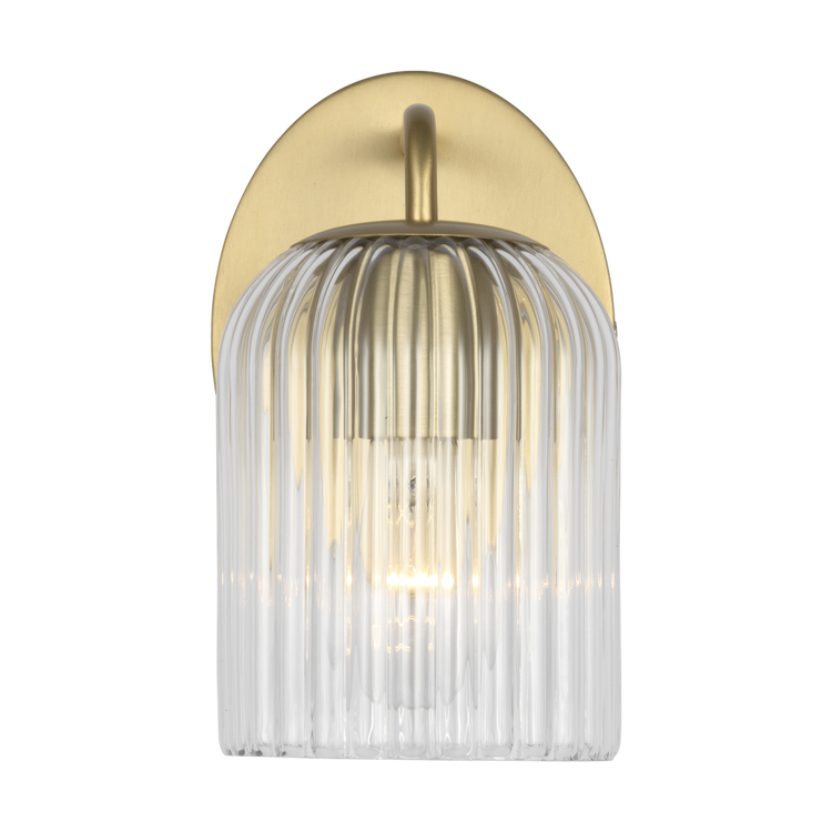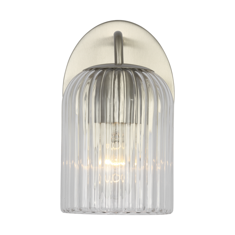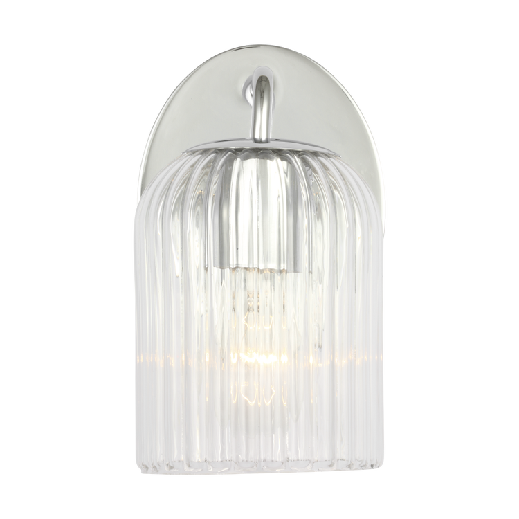 The Eisele Small Sconce introduces curvature and texture to the bath environment through softly contoured forms and suspended ribbed glass shades. The oval backplate adds a distinct visual counterpoint, offering an updated silhouette that reinforces the collection?s softened geometry. With gently arcing arms and open glass diffusers, Eisele balances sparkle with control, providing functional illumination suited to powder rooms, guest baths, and primary suites.