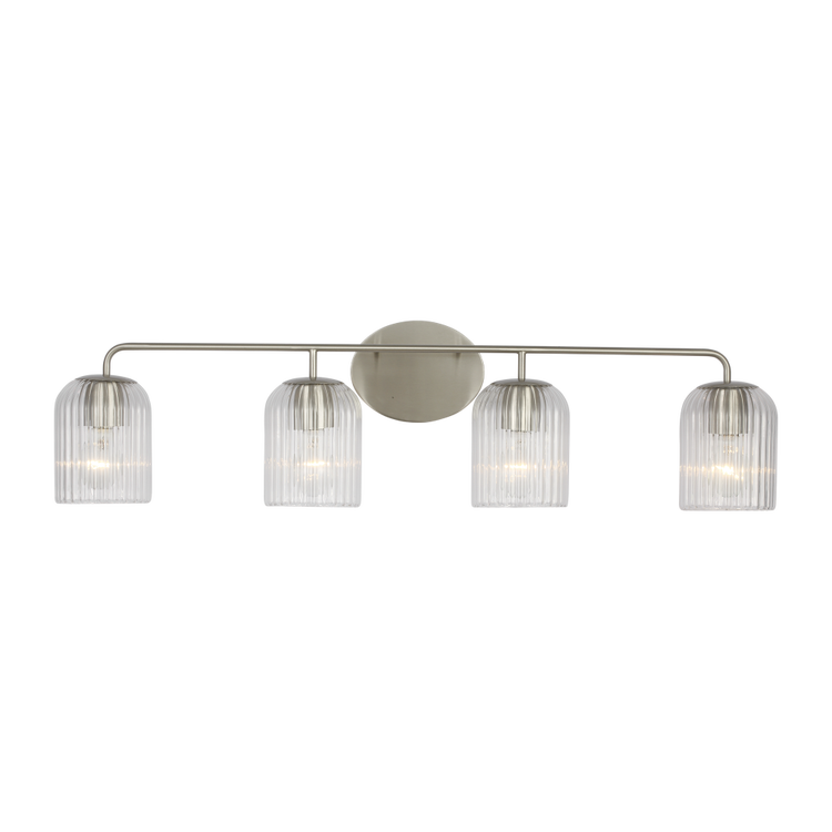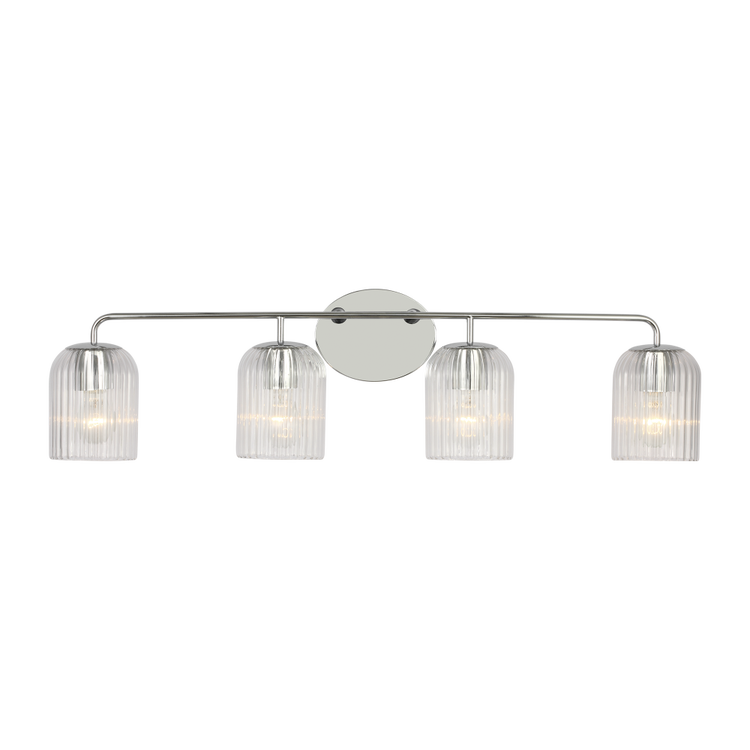 The Eisele Large Vanity delivers the largest expression in the series, with four ribbed glass shades supported along a single arced structure. The form maintains its elegance at scale, offering broad light coverage for primary baths or full-wall installations.