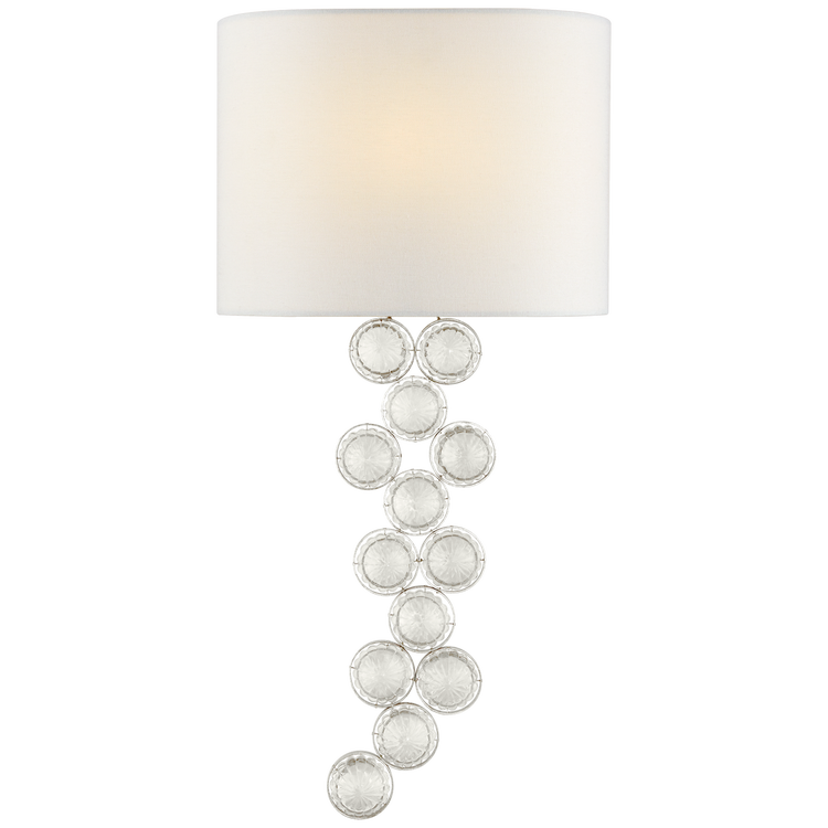 Milazzo Medium Right Sconce in Burnished Silver Leaf and Crystal with Linen Shade Open Box