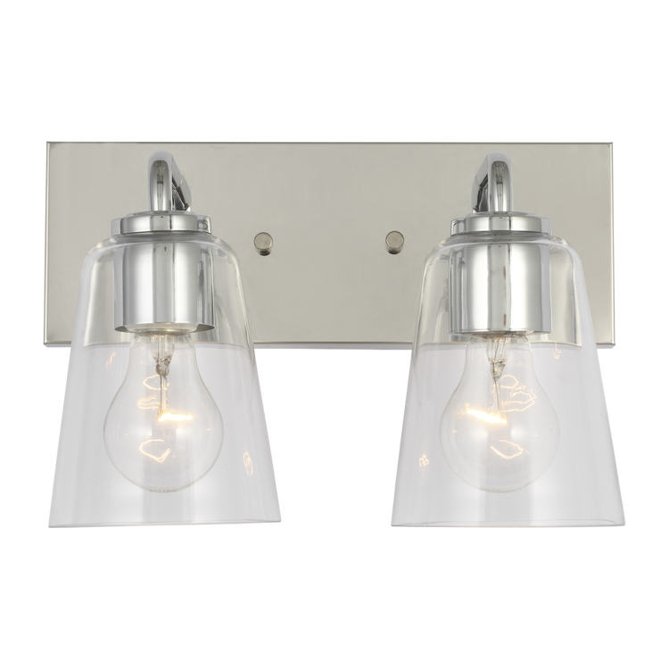 Miles Medium Vanity draws on a refined traditional profile and is grounded in beautiful form. The common element within the Miles line is the tapered glass shade available in clear or etched glass and hardware available in Midnight Black, Satin Brass, and Brushed Nickel. Miles effortlessly blends into a wide range of interior spaces?whether classic, contemporary, or traditional.