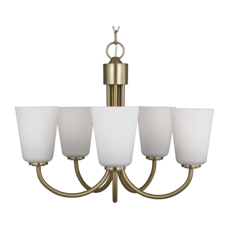 Miles Medium Chandelier in Satin Brass with Etched Glass / White Inside Bulb(s) Not Included