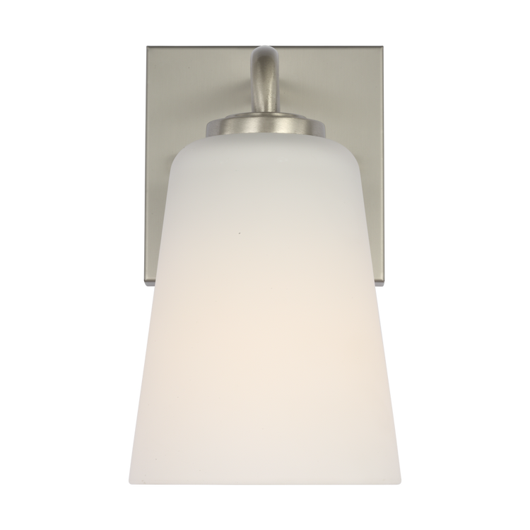 Miles Small Vanity in Brushed Nickel with Etched Glass / White Inside Bulb(s) Not Included
