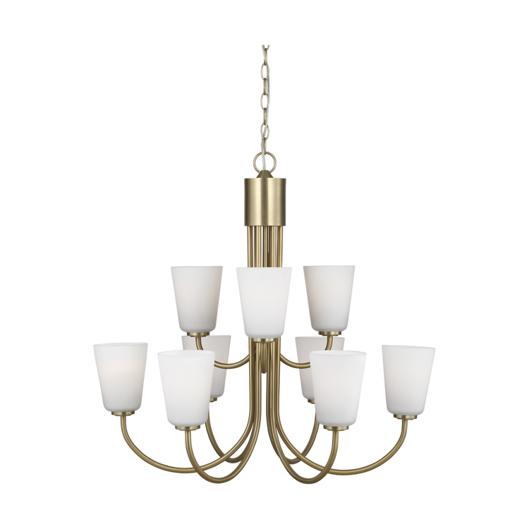 Miles Large Chandelier in Satin Brass with Etched Glass / White Inside Bulb(s) Not Included